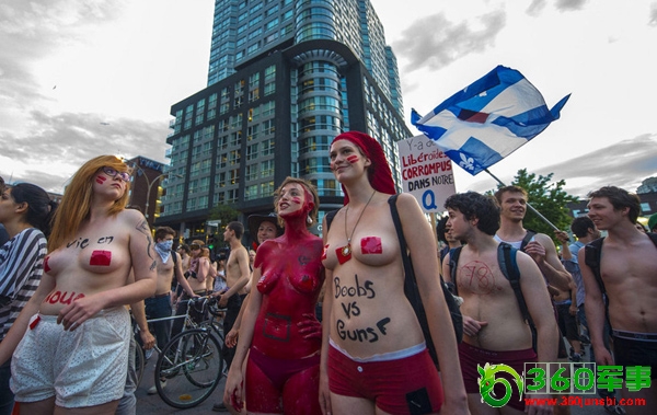 6月7日,加拿大蒙特利尔,赤裸的学生大游行,抗议学费上涨。