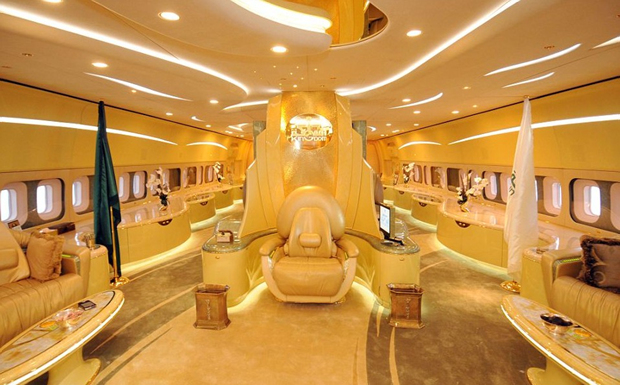 沙特王子阿尔瓦利德波音747私人专机上的奢华宝座。