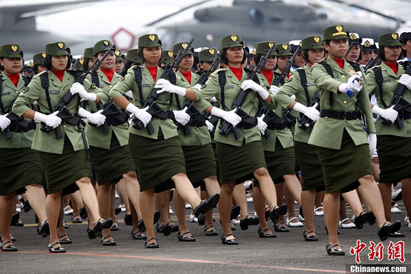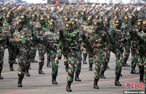 当地时间10月5日,印度尼西亚首都雅加达的哈利姆空军基地举行阅兵式庆祝建军67周年。图为阅兵式现场。